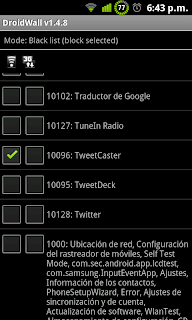 Este "cortafuegos" es una aplicación que corta el acceso a internet a aquella aplicaciones que nosotros seleccionemos. Es tremendamente útil puesto que permite diferenciar si nos vamos a conectar por wifi o 3G, así podemos seleccionar que un juego concreto si se pueda conectar por wifi pero nunca gastando nuestra tarifa de datos a modo de ejemplo. Es bastante común usar este programa para que algunas aplicaciones gratuitas que muestran anuncios no se conecten a internet para que dichos anuncios no se muestren.