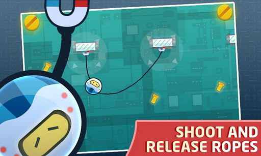 Hace un par de días me encontré de casualidad con un interesante juego, es una mezcla entre el viejo Magnetic Joe y Cut The Rope. RopeBot es un robot con una pinza magnética que tiene que llegar a un lugar recogiendo unas tuercas, así usaremos la pinza tocando las superficies metálicas y nos soltaremos tocando la cuerda. La mecánica de juego es tan idéntica a los dos antes mencionados que mueres tanto por pincharte como por caerte al vacío. Es interesante y es uno de esos típicos juegos por fases que proponen pequeños retos de habilidad combinados con puzzles. Puedes bajar la demo de RopeBot en el market.